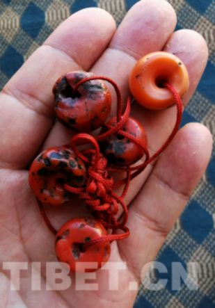 珊瑚在藏語中稱為“曲如”,在邊貿(mào)市場中的數(shù)量甚至多于綠松石,而且以真貨為主。其中原因,可能也主要在于制作普蘭當(dāng)?shù)胤椥枰?,以及人們喜歡將其作為戴在脖子上的項(xiàng)鏈飾品的緣故。