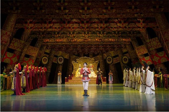 “大家可以看到,在這部舞劇中既有非常濃郁的盛唐風格,也有非常鮮明的西域文化特點?!蔽鑴 秱鹘z公主》總導演左青表示。舞臺上的每一幕都有情景定位、情節(jié)助推、情感渲染、情調濡潤,兼具依托文本結構的真情訴說和舞蹈本體的詩意表達,構建起舞劇的整體形式感。