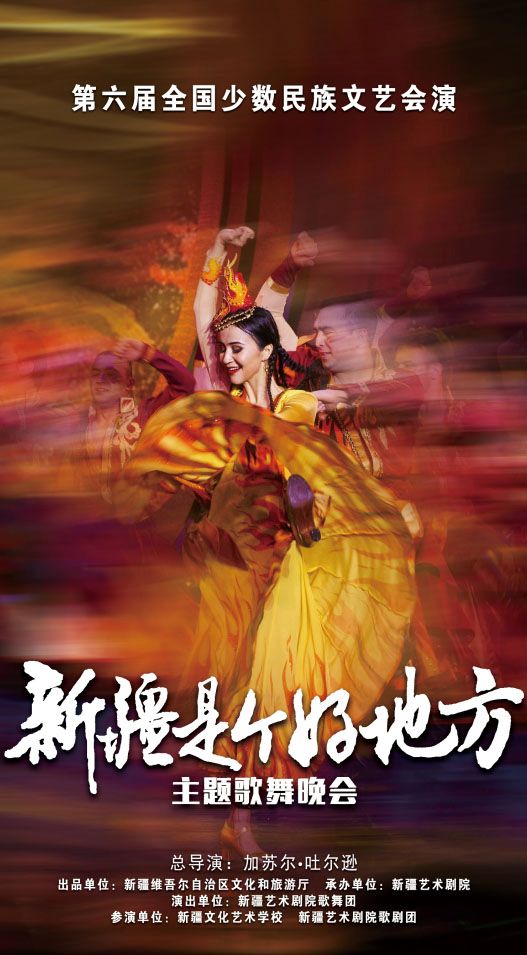 9月11日,由新疆維吾爾自治區(qū)文化和旅游廳策劃指導,新疆藝術劇院統(tǒng)籌打造,新疆藝術劇院歌舞團創(chuàng)作的主題歌舞晚會《新疆是個好地方》亮相第六屆全國少數(shù)民族文藝會演,在央視網(wǎng)和國家民委門戶網(wǎng)站進行展播,向全國觀眾講述了多彩的新疆、團結的新疆、大美的新疆。