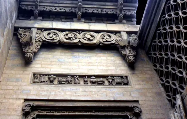 清代,北京紫禁城宮廷內墻面夾柱的通氣孔也都使用磚雕,鏤雕花鳥圖案,牢固磚雕 而美觀,且利于空氣流通。