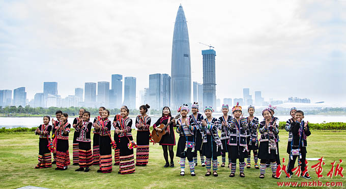 “學習是相互的,滋養(yǎng)是雙向的?!鄙钲凇帮w越彩虹”公益項目主理人王芳說,“來自五湖四海的兄弟姐妹是深圳的建設者,是改革開放的參與者,我們同他們一起,回望他們的家鄉(xiāng),幫助他們牽掛的地方有所發(fā)展,這是對改革開放更進一步解讀的一種體現?!笔陙恚帮w越彩虹”項目秉承“以童聲合唱傳遞民族文化之美”的宗旨,推動少數民族文化的保護和傳承,已在全國各民族地區(qū)建立了33個民族童聲合唱團,并將越來越多的少數民族孩子帶到深圳、北京甚至更大的國際舞臺。“漢族,少數民族,都是中華民族;邊疆,大城市,都是中國;城市與鄉(xiāng)村,都是家園。中華多民族多元一體、共融共生,我們有著同一個中國夢?!蓖醴颊f。