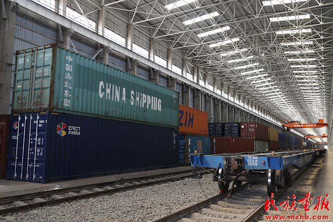 阿拉山口口岸有亞洲最大的“全天候”室內集裝箱換裝場,年換裝能力20萬標箱(滕俊 攝影)