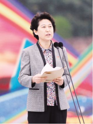 河南省委常委、省委副書記、政法委書記,運(yùn)動(dòng)會(huì)組委會(huì)執(zhí)行主席喻紅秋致歡迎詞。 趙利 攝