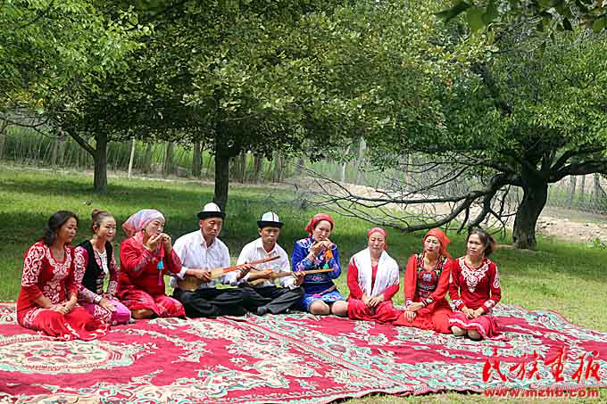 據(jù)色帕巴依鄉(xiāng)黨委委員阿依木古麗·艾山卡德介紹,該鄉(xiāng)在鄉(xiāng)中心小學(xué)專門開設(shè)課程教學(xué)生學(xué)彈庫姆孜琴,并積極舉辦“我為庫姆孜代言”活動(dòng),積極培養(yǎng)庫姆孜傳承人。此外,鄉(xiāng)里還專門組建有庫姆孜彈唱隊(duì)?!拔覀兝冒偃瘴幕瘡V場(chǎng)和日常的演出走村串巷,積極參加縣宣傳部開展的各項(xiàng)文體活動(dòng)。今年2月開展的群眾大會(huì),把庫姆孜音樂重新填詞,配合惠民政策宣傳,將傳播民族文化與群眾思想政治工作相結(jié)合?!蓖瑯?,在烏恰縣吾合沙魯鄉(xiāng)恰提村,當(dāng)?shù)伛v村工作隊(duì)積極組織20名返鄉(xiāng)學(xué)生開辦“庫姆孜彈唱文藝培訓(xùn)班”,廣泛調(diào)動(dòng)返鄉(xiāng)大學(xué)生加入到文化傳承的行列中。