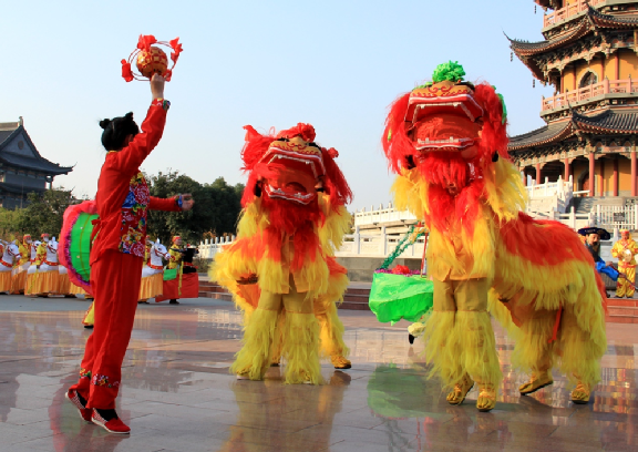 又稱“獅燈”,歷史悠久。從北方到南方,從城市到鄉(xiāng)村,逢年過節(jié)及慶典盛世都可以見到歡快的舞獅活動(dòng),把老百姓的歡喜心情表達(dá)得淋漓盡致,獅舞,獅子在中華各族人民心目中為瑞獸,象征著吉祥如意,從而在舞獅活動(dòng)中寄托著民眾消災(zāi)除害、求吉納福的美好意愿。獅舞歷史久遠(yuǎn),唐宋詩文中多有對(duì)獅舞的生動(dòng)描寫?,F(xiàn)存獅舞分為南獅、北獅兩大類,南獅具有較多的武功高難技巧,神態(tài)矯健兇猛;北獅嬌憨可愛,多以嬉戲玩耍為表演內(nèi)容;根據(jù)獅子假型制作材料和扎制方法的不同,各地的獅舞種類繁多,異彩紛呈。
