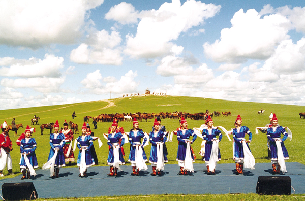 內(nèi)蒙古烏蘭牧騎的演員,吹拉彈唱跳,幾乎個(gè)個(gè)是多面手。從以前騎馬下鄉(xiāng)到現(xiàn)在坐車下鄉(xiāng),方式雖然有變,但為農(nóng)牧民演出的熱情沒有變。鄂溫克自治旗烏蘭牧騎在當(dāng)?shù)貫檗r(nóng)牧民演出都是公益性的,一年最少也有100多場。但自然地,由上級指派、旅游接待、大型晚會、出訪演出,則收一些相應(yīng)費(fèi)用。全年下來300多場。他們的演出節(jié)目,一般都有舞蹈、獨(dú)唱、重唱、馬頭琴合奏、民歌聯(lián)唱等,包括《敖包相會》、《萬馬奔騰》等馬頭琴名曲,也有他們自己創(chuàng)作的《山林回想》、《鄂溫克大地》等獲獎(jiǎng)歌舞劇目。