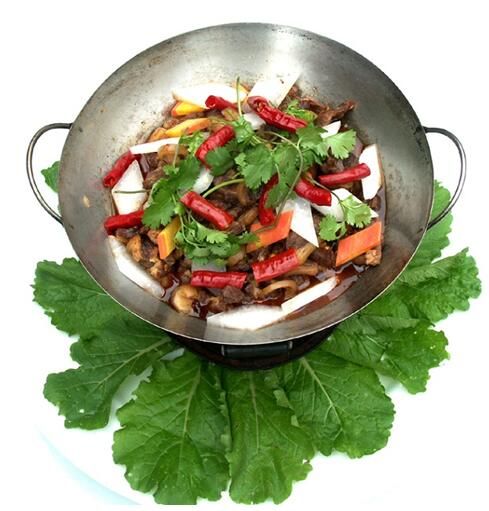 “蘿卜羊”為羅甸布依族人民新創(chuàng)制的一道享譽縣內(nèi)外的名菜。羅甸山多、雨多、草茂,氣候溫和,在這塊得天獨厚的適宜于發(fā)展畜牧業(yè)的土地上,當?shù)厝罕姵浞掷锰烊徊輬鲑Y源放牧黑山羊。羅甸黑山羊為羅甸特有的優(yōu)良羊種,肉質(zhì)細嫩,無值味,營養(yǎng)豐富,活羊遠銷廣東、廣西、湖北、湖南、四川、重慶等地。 “蘿卜羊”制作工序并不復雜,它以黑山羊肉和白蘿卜為主料,配以羅斛辣椒(本地土產(chǎn)辣椒)、木姜、砂仁、花椒等配料,通過合理加工調(diào)配而成。此道菜色澤悅目,羊肉細嫩,油而不膩,天膻味,蘿卜軟而不爛,營養(yǎng)豐富,口感極佳,食之能強身健體,延年益壽。此道菜為羅甸特有的一道名菜,它不僅為當?shù)貜V大群眾所鐘情,亦為四方賓客到羅甸必品嘗的一道美味佳肴。
