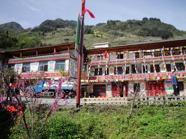作為災(zāi)后重建的示范工程,與藏家風(fēng)情園一道,藏寨在承擔(dān)民居功能的同時(shí),也是旅游接待的集中區(qū),由于位于三江旅游公路的背側(cè)區(qū)域,并不為大多數(shù)游客所熟知。藏寨生活的異域感、田園詩意般的感受和完善的旅游設(shè)施使上、中、下三寨成為三江生態(tài)旅游區(qū)最宜“散心“的區(qū)域。
