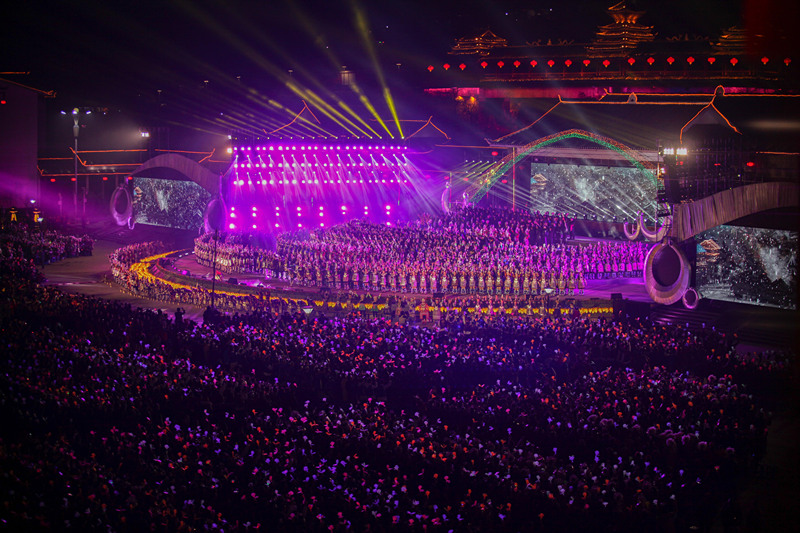 2017年12月18日,中國侗年暨第八屆侗文化旅游節(jié)在貴州省黎平縣開幕,萬人同唱侗族大歌 (瞿宏倫 / 攝)