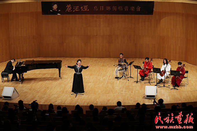 2017年9月15日,由中央民族大學(xué)音樂學(xué)院聲歌系主辦,北京五彩之聲文化傳播有限公司承辦的“蒼茫謠”烏日娜獨(dú)唱音樂會(huì)在中國音樂學(xué)院國音堂大音樂廳舉辦。