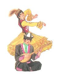 哈薩克族的傳統(tǒng)樂(lè)器可分為彈奏樂(lè)器、吹奏樂(lè)器以及打奏樂(lè)器。其中“冬不拉”、“薩孜”和“布特根”屬?gòu)椬鄻?lè)器;“斯伯孜俄”、“斯?fàn)柲且馈钡葘俅底鄻?lè)器;“達(dá)布拉”、“哈拉”等屬打奏樂(lè)器。無(wú)論是哪種類型的樂(lè)器無(wú)疑都將哈薩克族人民豪放灑脫,但又不失柔軟細(xì)膩的情感表現(xiàn)得淋漓盡致。哈薩克族的舞蹈剛健有力,瀟灑優(yōu)美,如“喀達(dá)卓日哈(黑走馬)”、“狗熊舞”、“鷹舞”、“擠奶舞”等都是反映哈薩克族人民日常生活的民族舞蹈。除歌曲、舞蹈以外,哈薩克族還有姑娘追、叼羊、賽馬等妙趣橫生的體育娛樂(lè)活動(dòng)。