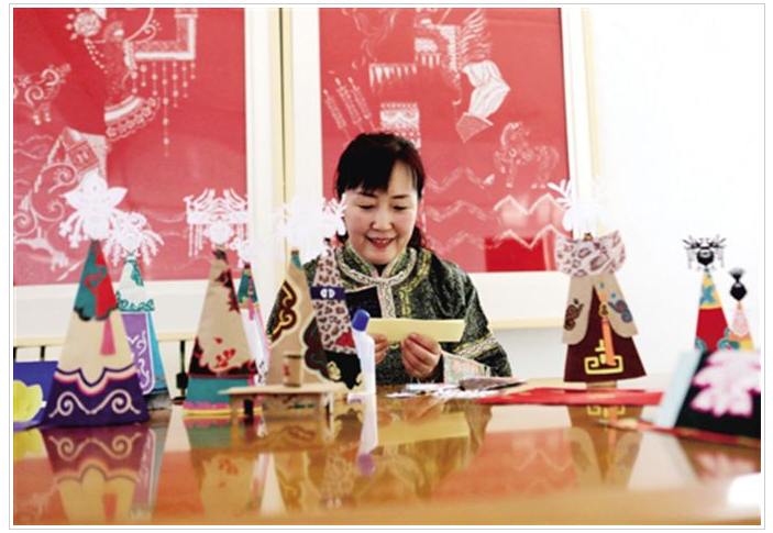 多年來,她深入達斡爾族老區(qū),向老藝人學(xué)習(xí)求教,搜集、整理民族和民間文化遺產(chǎn)。特別是在達斡爾族傳統(tǒng)剪紙、哈尼卡紙偶制作和民族服飾的研究和創(chuàng)作上傾注了大量心血。