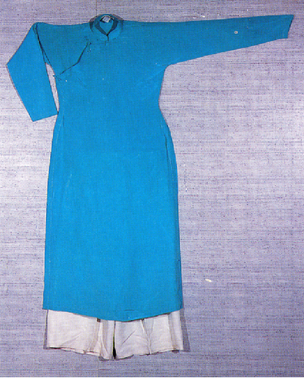 在古籍資料《防城縣志》中這樣記載:“安南人的服裝,男衫長過膝,窄袖袒胸,腰間束帶;女衫長不遮臀,褲闊……”從此項(xiàng)描述中可以大致知道京族早年傳統(tǒng)服飾的概況。