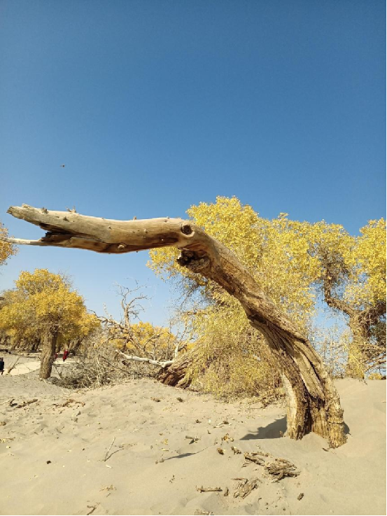 胡楊,又稱(chēng)胡桐、英雄樹(shù)、異葉胡楊、異葉楊、水桐、三葉樹(shù),是生長(zhǎng)在沙漠中的樹(shù)種,它耐寒、耐旱、耐鹽堿、抗風(fēng)沙,有很強(qiáng)的生命力。