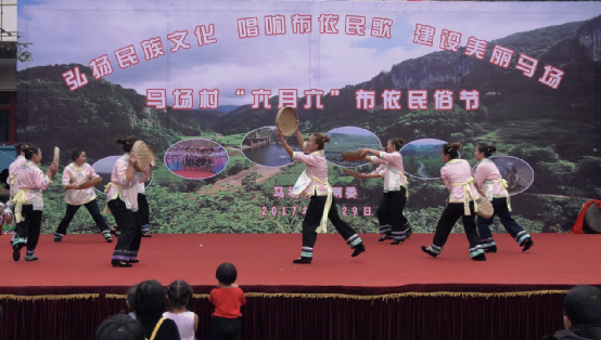 祭祀完成后,當(dāng)?shù)氐哪信仙俅┲约旱拿褡宸棧d高采烈地為客人表演極具民族特色的歌舞。連周邊的苗族同胞也來(lái)為布依族節(jié)日慶賀,登臺(tái)表演共敘友誼。一些村民們自發(fā)性地登臺(tái)參與演出,雖然質(zhì)樸卻不失誠(chéng)意。