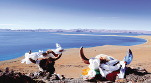 放眼望去,羌塘草原上有許多大大小小的湖,它們?nèi)纭疤焓怪疁I”“天空之鏡”,毫無(wú)規(guī)則地鑲嵌在草原上。湖泊,在我們的藏族司機(jī)桑堆師傅口中是蒼茫大野的靈魂,是神族們居住的水晶宮。所以,每有湖泊出現(xiàn)在桑堆師傅的視野里時(shí),他總是表情肅穆,口念六字真言以祈求平安。