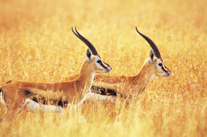 而當(dāng)我們上車離開(kāi)的時(shí)候,它們竟然又群起而追之,飛奔的四蹄濺起陣陣煙塵。它們與我們的車子齊頭并進(jìn),看著它們?cè)噲D超越我們的樣子,不得不從心里贊賞它們的彪悍強(qiáng)壯。在最酷烈的生存環(huán)境里,它們卻成就了最卓越的自我;在最荒寂的土地上,它們卻開(kāi)出了最讓人心動(dòng)的生命花朵。大自然就是這樣的奇妙!