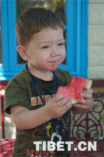 “馕是當(dāng)?shù)厝穗x不開的食物,包括這里的漢族群眾,現(xiàn)在都已經(jīng)習(xí)慣了這樣的飲食。我曾見過當(dāng)?shù)匾恍h族朋友到內(nèi)地一趟,回來后第一件事就是吃拌面、烤肉,喝奶茶,我們多個(gè)民族的人長期居住在這里,生活早已交融在一起了?!碑?dāng)?shù)鼐用窈Aβ?阿吾提對(duì)記者說。圖為當(dāng)?shù)靥厣朗场?/p>