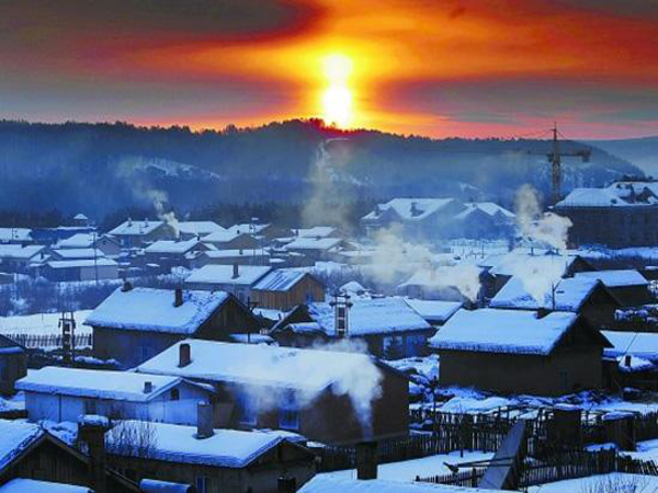 古建中國(guó)漠河北極村是中國(guó)大陸最北端的臨江小鎮(zhèn)。位于大興安嶺山脈北麓的七星山腳下,緯度高53°33′30″,與俄羅斯阿穆?tīng)栔莸囊粮衲榷饕乐Z村隔江相望,素有“北極村”、“不夜城”之稱。