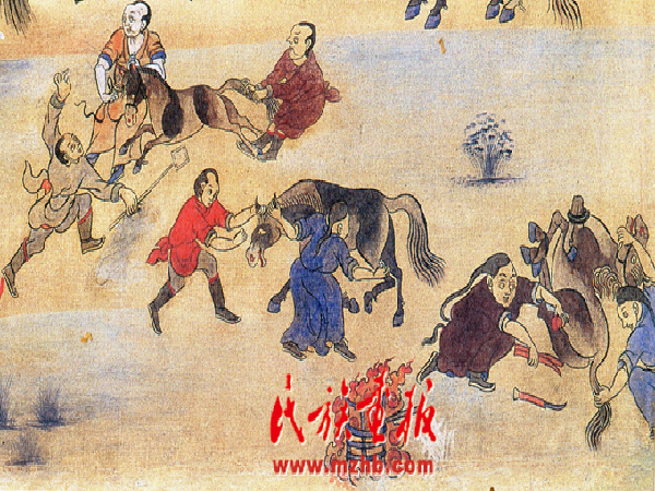 放牧遠行,馬是重要的交通工具;嫁娶新人,要以駿馬為坐騎;宗教神話中,馬是神的代言者;草原盛會,賽馬是必不可少的內(nèi)容;在蒙古族民間傳說和歌謠中,對馬的贊頌更是比比皆是。馬是蒙古人日常生活最親密的伙伴,蒙古人有特別濃厚的戀馬情結(jié),這就是我們說的“馬文化”現(xiàn)象。蒙古族的馬文化是在長期生產(chǎn)生活中逐漸形成、演化、發(fā)展而來的。曾是軍事、交通運輸、農(nóng)業(yè)生產(chǎn)等活動的主要動力。