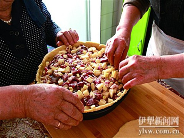 拜列西是塔塔爾族的一種傳統(tǒng)美食。68歲的買斯胡旦·熱合木是伊犁州級非遺項目塔塔爾族拜列西制作技藝的傳承人。她告訴記者,塔塔爾族家里來客人的時候,用餐程序往往分為三步:先上茶;其次,端來用肉湯煮的面,同時奉上煮熟的肉塊;接著,再擺上各式各樣的菜,其中,就有拜列西。