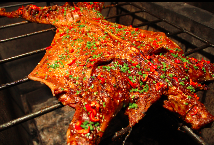 全羊是蒙古族在喜慶宴會和招待尊貴客人時使用的食品。蒙古語把全羊叫“首思”。在宴席中如果上全羊,則稱全羊席。在全羊席中,一般是在食客吃了牛羊肉制的冷熱菜正趨興奮之時上全羊。一種是讓客人觀看后撤回廚房,把皮層肉片切成半寸寬、二寸長的方塊,放在大盤內,再把貼骨肉切好,一同上桌。另一種是廚師當客人的面切塊。一般上烤全羊后,隨上蒙古包子和大米飯、羊骨湯。