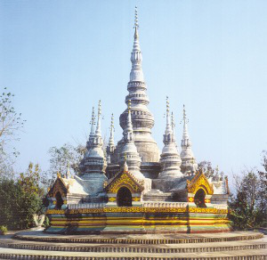 云南勐龍曼龍飛筍塔。勐龍曼飛龍筍塔始建于公元1204年,塔群造型緊湊,挺拔多姿,諸塔擁立,猶如雨后春筍,故得名。主塔尖端是銅制的風(fēng)笛,小塔頂部掛有銅制佛標(biāo)式的風(fēng)鈴,山風(fēng)吹來,大小塔清脆的應(yīng)和聲響引人遐想。