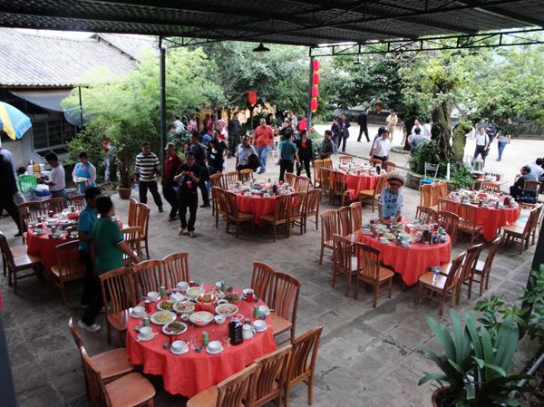 漫步在村道里,可以看見(jiàn)古色流香白族門(mén)樓,門(mén)樓寫(xiě)“靈山一家”、“鳳尾居”、“古樹(shù)人家”、“松風(fēng)園”等牌匾,每家都各具特色,無(wú)不散發(fā)出濃濃農(nóng)家風(fēng)味和優(yōu)雅文化氣息。在這些集餐飲、休閑、住宿為一體的白族特色農(nóng)家樂(lè),游客可以品嘗到當(dāng)?shù)靥禺a(chǎn)野生冷菌、雞 、樹(shù)花、香竹筍、青蛙皮、金雀花,也可以躺在數(shù)百年的古板栗樹(shù)下的搖椅中,細(xì)細(xì)品味‘心靜秋澄月,情空云淡天’的意境。