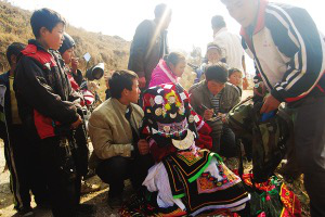 彝族婚禮一般在冬季進(jìn)行。迎親的小伙子雖然要忍受潑水的寒冷之苦,但任憑新娘家的姑娘們怎樣使“壞心眼兒”,都不能有任何怨言,更不能生氣。