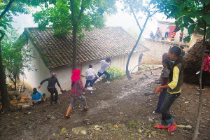 彝族人認(rèn)為,清水能驅(qū)惡除邪,送走妖魔,帶來幸福,因此接親、送親都要潑水。接親這一天,新娘的姐妹組織鄰近的婦女早做好了準(zhǔn)備,躲藏在房前屋后或墻里墻外,只等接親隊(duì)伍到來。當(dāng)接親隊(duì)伍東瞧瞧,西望望,小心謹(jǐn)慎地走進(jìn)女方家門時,一瓢瓢、一盆盆清水就會劈頭蓋臉地潑來。用水方便的地方,人們還直接接上水管射,令接親者防不勝防,一個個被淋成了“落湯雞”。他們有時也會趁人不備,搶過女方手中的水桶或水盆反擊。在一片歡鬧聲中,姑娘們不斷展開攻勢,越“戰(zhàn)”越猛,而接親的小伙子們則難以招架。