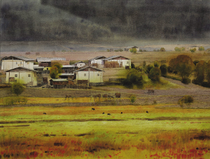 許海剛認(rèn)為,水彩畫的誕生是為了戶外寫生的方便,因此,風(fēng)景寫生極為重要。幾十年來(lái),他每年都會(huì)帶著學(xué)生外出寫生,從東北的伊春到海南的三亞,從南疆的塔什庫(kù)爾干到福建的崇城,流連于高山大海、小橋流水之間。他最喜愛(ài)的,是西部民族地區(qū)的風(fēng)景,不但氣象開闊,變化多姿,而且人煙稀少,特別適宜入畫。