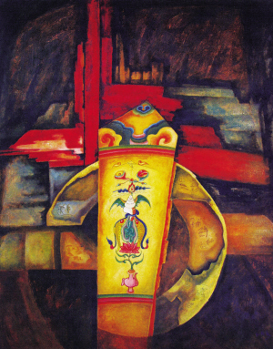 和向東:7年前認(rèn)識(shí)北京至高美術(shù)館館長(zhǎng)林青先生后,他建議用油畫(huà)來(lái)表現(xiàn)東巴文化,從那時(shí)起,沒(méi)畫(huà)過(guò)油畫(huà)的我開(kāi)始了油畫(huà)的創(chuàng)作。說(shuō)實(shí)話,我一直認(rèn)為不適合用油畫(huà)形式來(lái)表現(xiàn)東巴文化,不過(guò)經(jīng)過(guò)多年的嘗試,我現(xiàn)在有了一種“重彩油畫(huà)”的意味了,比較講究畫(huà)面的偶然性。云南重彩畫(huà)派的斑斕厚重和富麗的色彩表現(xiàn)效果我一直很迷戀,我力圖想把這些色彩感覺(jué)用油畫(huà)語(yǔ)言表現(xiàn)出來(lái),當(dāng)然還處在摸索嘗試中。雖然都是油畫(huà),但與專(zhuān)業(yè)油畫(huà)家的作品相比,我的“油畫(huà)味”不是很濃,也許這就是我的作品特色吧!
