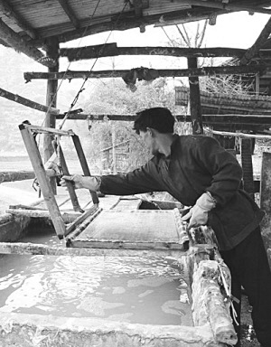 有關(guān)博物館專家研究發(fā)現(xiàn),石橋古法造紙工藝流程與明朝宋應(yīng)星著《天工開物》記載的圖解基本一致,因而認(rèn)定是漢代到唐代這一時期的造紙工藝,距今已有一千四五百年的歷史。