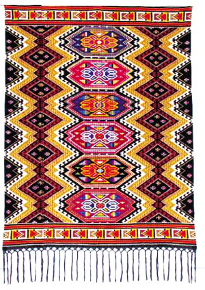 在長(zhǎng)期的藝術(shù)實(shí)踐中,葉水云感到自己的專業(yè)美術(shù)水平有限。于是,她考入鳳凰職業(yè)中專學(xué)習(xí)美術(shù)專業(yè),并被留校任教,后又在湘西州教育學(xué)院進(jìn)修大學(xué)美術(shù)專業(yè)?!巴良铱楀\沒(méi)有草稿,最重要的一個(gè)環(huán)節(jié)就是配色。以前配色沒(méi)有理論指導(dǎo),主要從個(gè)人感覺(jué)出發(fā),喜歡紅、綠等艷色系。除了講究圖案平整以外,配得好不好自己也不清楚。學(xué)習(xí)后才慢慢認(rèn)識(shí)到,配色應(yīng)注重冷暖色調(diào)的對(duì)比與襯托?!彼?,葉水云織出來(lái)的“西蘭卡普”色彩更為統(tǒng)一調(diào)和,艷而不俗,粗獷中有細(xì)節(jié),大氣中有精巧,看上去更加舒服。