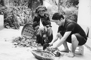 駐村干部(右)幫助村里老人干家務(wù)活
