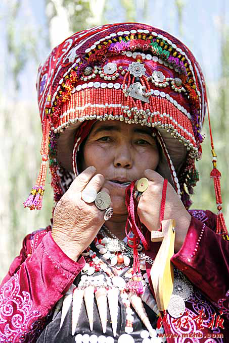 “奧孜庫姆孜”是同時用嘴吹和用手指彈奏的樂器,琴上只有一個小小的鋼片用來彈奏。這種樂器只有柳葉大小。演奏時,琴頭放入嘴里,抵于門齒之間,用食指彈奏鋼片,并同時在口腔內(nèi)呼吸運(yùn)氣進(jìn)行吹奏。在彈奏和呼吸之間奏出婉轉(zhuǎn)美妙的樂曲,因此被稱為柯爾克孜族的“美妙之口”。