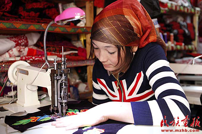 克孜勒陶鄉(xiāng)婦女手工藝刺繡合作社。手工刺繡業(yè)成為克孜勒陶鄉(xiāng)農(nóng)牧民增收的一個渠道