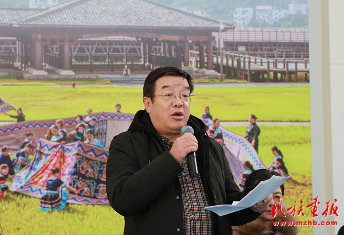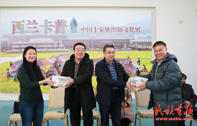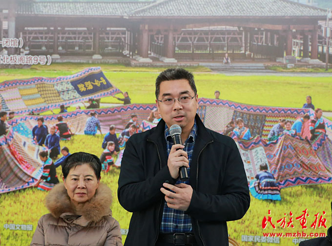 會上中國民族博物館黨委副書記、副館長張志文向少數(shù)民族作家們介紹了展覽,他說:“土家族是一個歷史悠久的民族,現(xiàn)在有835萬人口。土家織錦也有兩千多年的發(fā)展歷史,有250多種傳統(tǒng)圖案,是中國民間五大織錦之一,堪稱中國服飾文化中的奇葩。中國民族博物館從歷年征集收藏的300多幅清代以來的土家織錦中,選取了156幅精品土家織錦、21分鐘傳承人視頻和120余幅土家民族風(fēng)情照片。我們和中國婦女兒童博物館合作舉辦了這個高品質(zhì)的專題展,旨在傳承和弘揚(yáng)土家族國家級非物質(zhì)文化遺產(chǎn)?!?/p>
