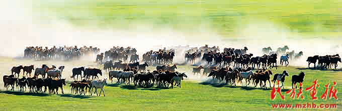 內(nèi)蒙古自治區(qū)呼倫貝爾市鄂溫克族自治旗是內(nèi)蒙古東部的綠色凈土,這塊未被污染的寶地上萬(wàn)馬奔騰(鄂溫克族自治旗攝影協(xié)會(huì) 供圖)