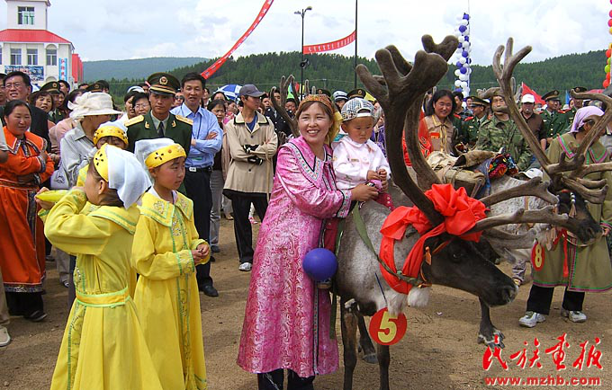 鄂溫克族人飼養(yǎng)馴鹿歷史悠久,無(wú)論男女老少都喜愛(ài)和保護(hù)馴鹿,將它們視為吉祥、幸福的象征。圖為敖魯古雅鄂溫克族鄉(xiāng)的馴鹿王比賽上的參賽馴鹿