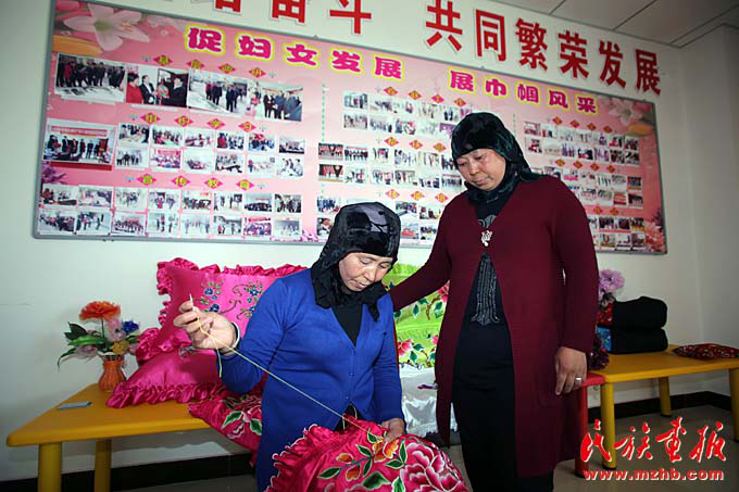 東鄉(xiāng)縣婦聯(lián)開展的手工編織技能培訓使更多東鄉(xiāng)族婦女利用刺繡等一技之長增加了家庭收入(胡發(fā)偉 攝影)