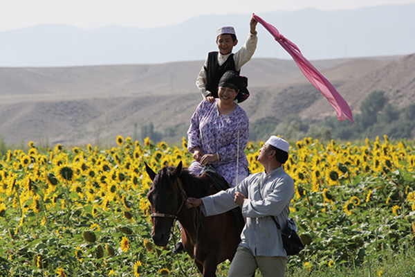 相比于《德吉德》中對(duì)蒙古人性情的原生態(tài)展現(xiàn),《伊犁河》似乎在民族特征上不那么突出。依賴(lài)故鄉(xiāng)的母親、向往城市的兒子、生活的變遷與成長(zhǎng)的感悟,在世俗每個(gè)角落里的家庭中都上演著、發(fā)酵著。這種普世的、共性的情感,無(wú)關(guān)民族,無(wú)關(guān)地域。導(dǎo)演用伊犁的村莊和上海這個(gè)現(xiàn)代化都市之間的落差,詮釋著親情與文化。影片的結(jié)局無(wú)疑做出了選擇,無(wú)論城市的人群多么川流不息,也比不上童年在故鄉(xiāng)與親人的耳鬢廝磨。