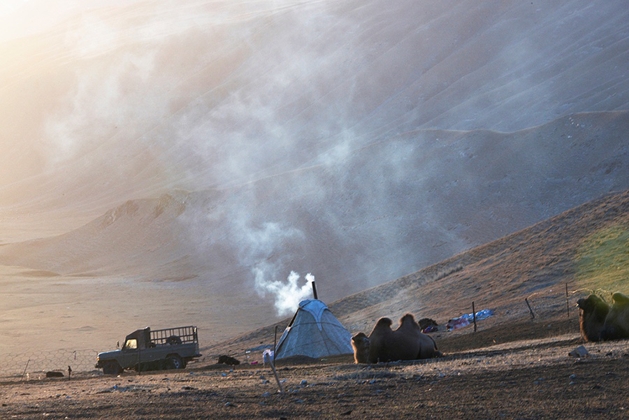 搬進(jìn)城里之后,蒙古人多種擇業(yè)的可能和他們遠(yuǎn)離草原以后的種種行為,很難與數(shù)千年蒙古人的歷史形象與定位相符。彭才一家的狀態(tài)與所用的氈包,讓我有一種久違的親切感。氈包和類(lèi)似于氈包的種種信息,都在給你描述一種安適、踏實(shí)、畜糞煙火繚繞的氛圍。