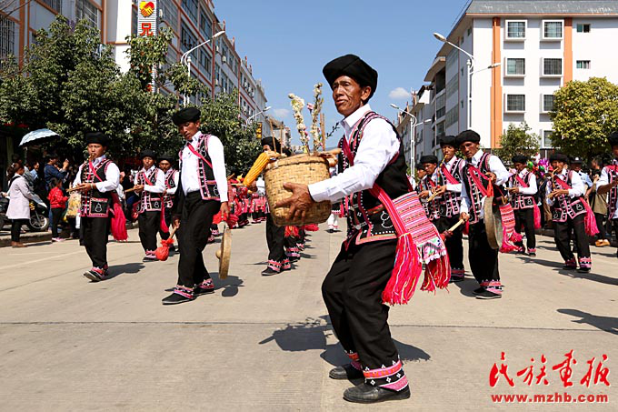 正月初三,鄉(xiāng)鎮(zhèn)拜年隊伍走進縣城(瀾滄縣民宗局供圖)