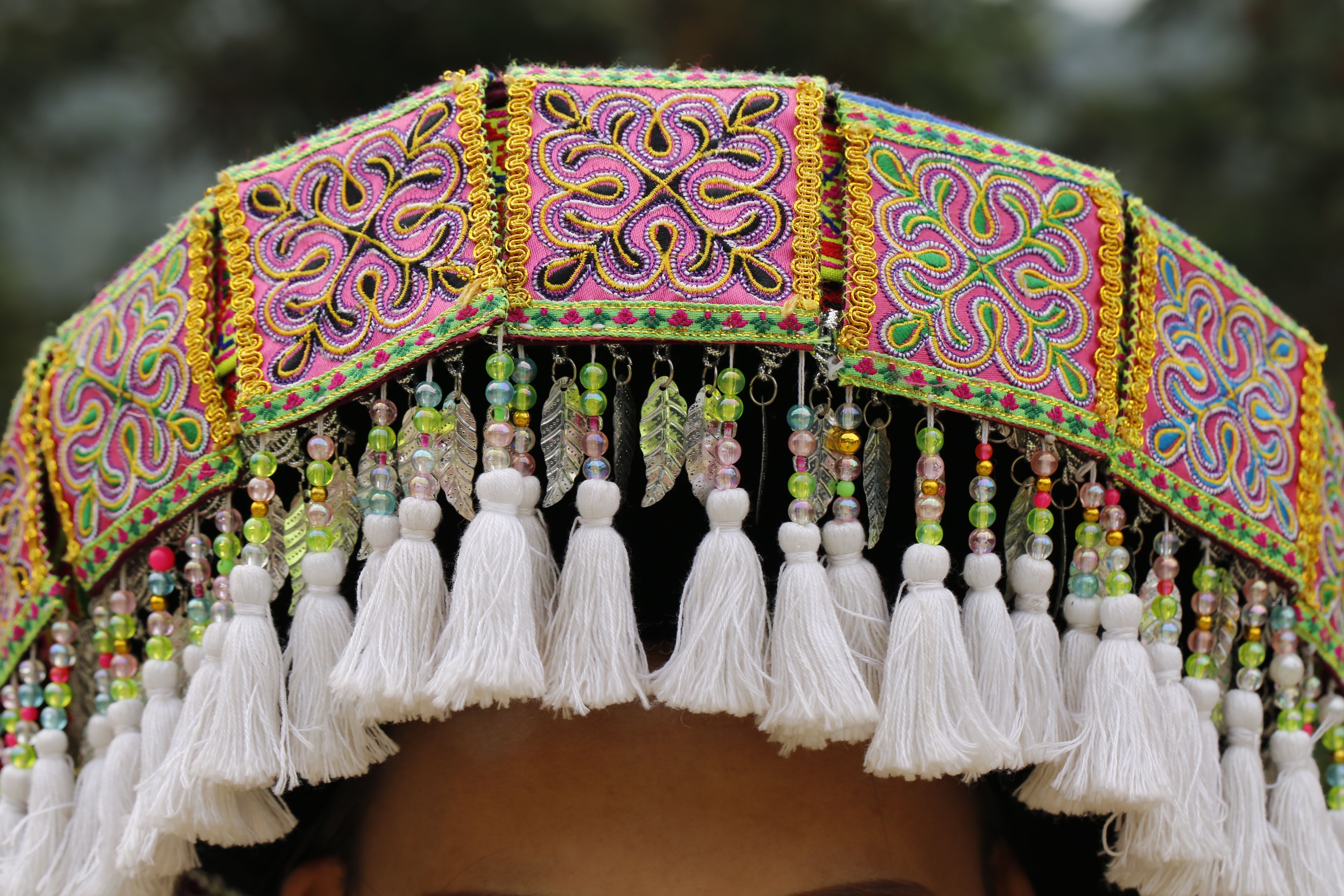 苗族女子服飾花帽-側(cè)面繡花及裝飾1