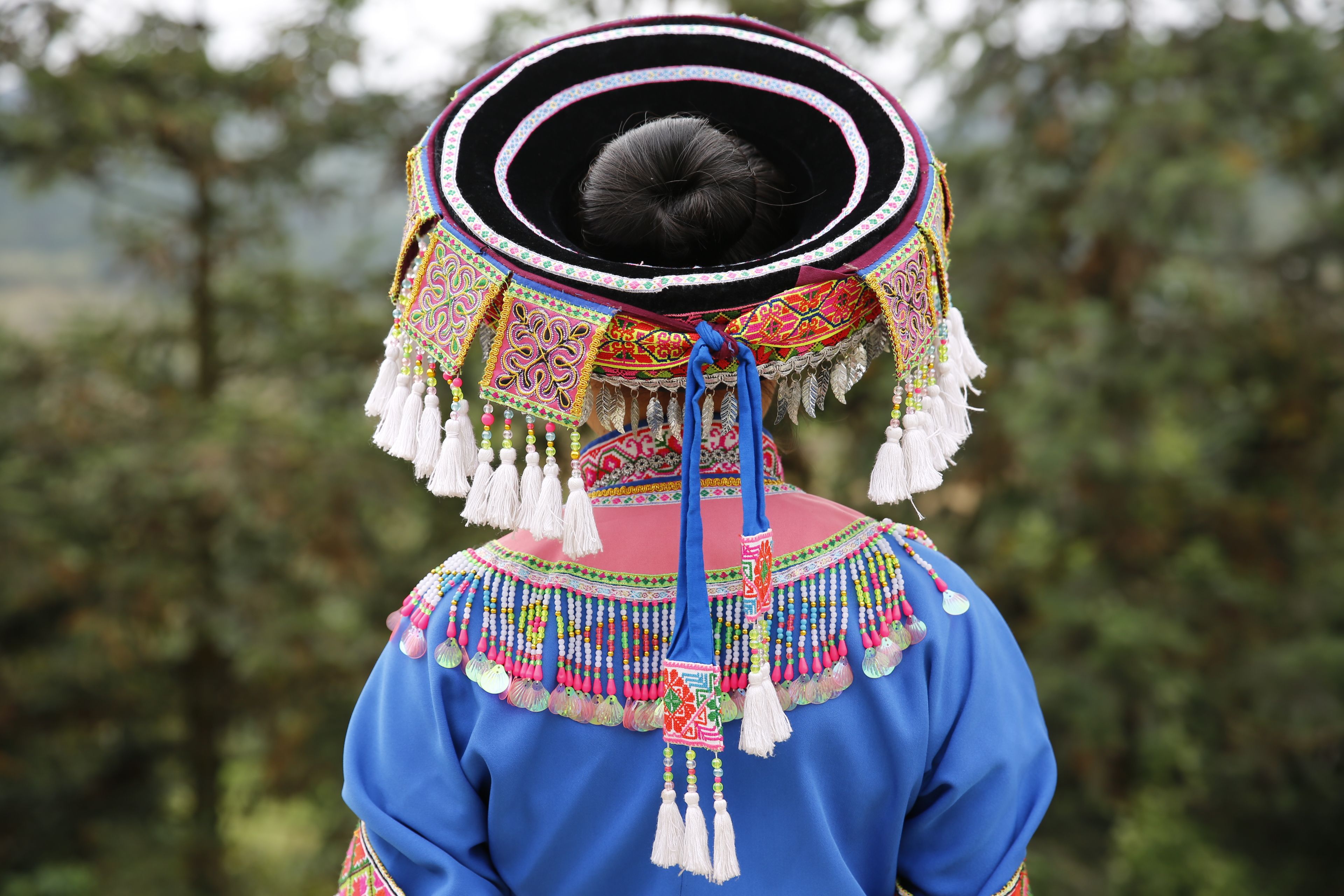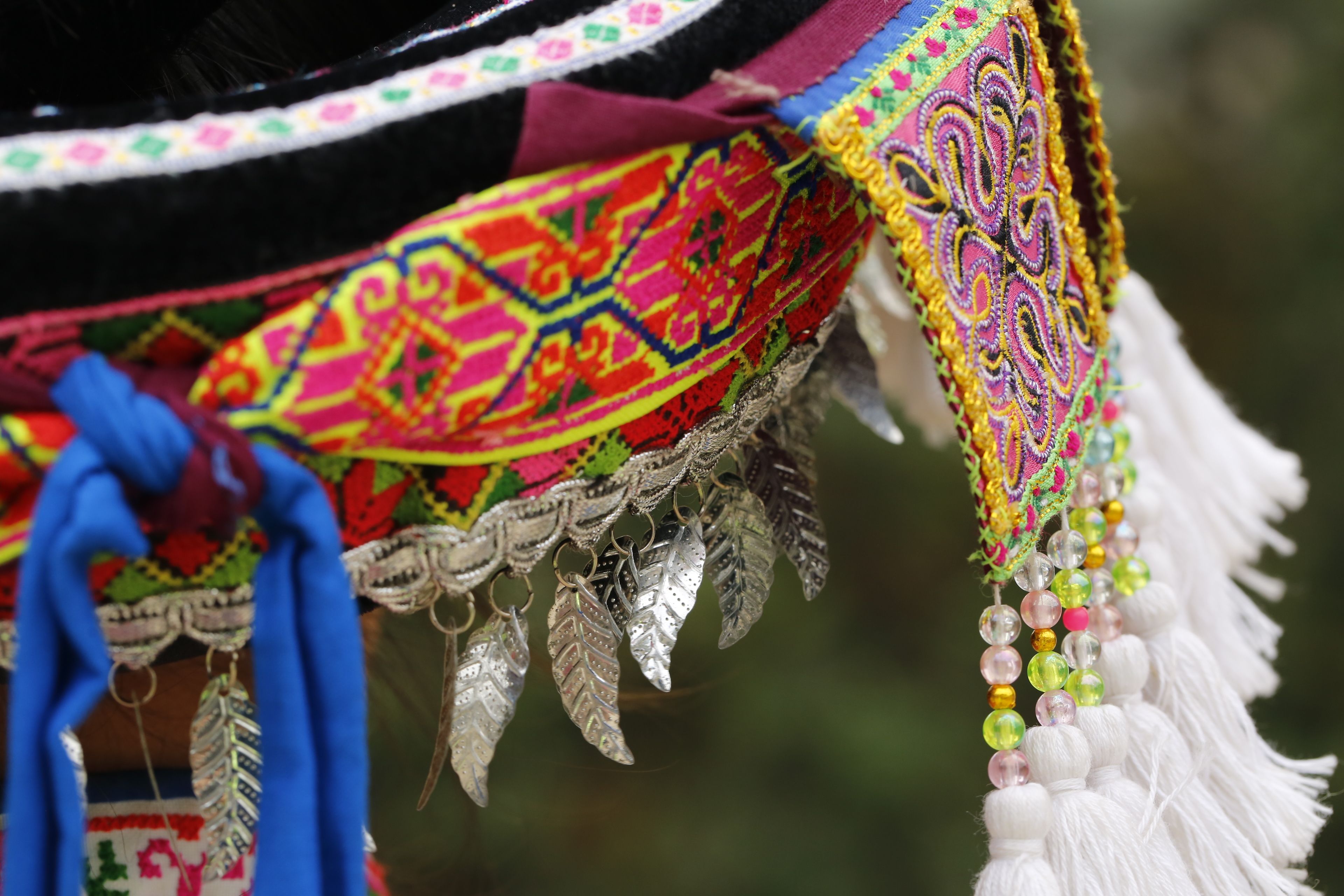 苗族女子服飾花帽-側(cè)面繡花及裝飾2