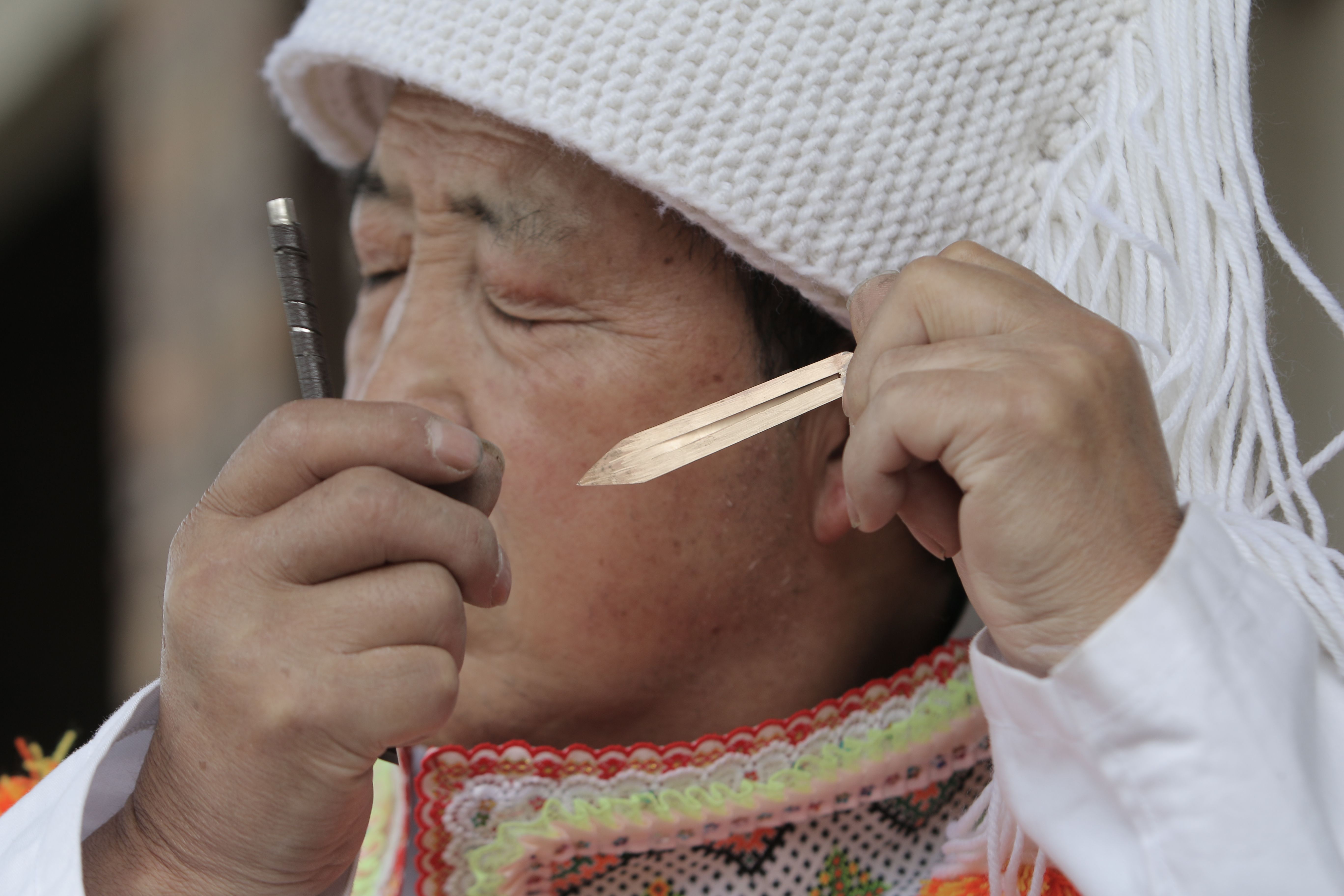 圖片說(shuō)明:貴州貴陽(yáng)苗族口弦制作手藝人