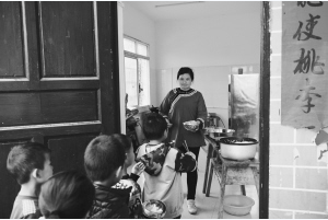 2012年,國家實(shí)施義務(wù)教育階段學(xué)生營養(yǎng)餐計劃,因?qū)W生少,學(xué)校沒有配備專門的食堂人員,吳浪就讓妻子回鄉(xiāng)義務(wù)給孩子們煮飯,直至2015年底,楊勝云才拿到每月1200元的工資。