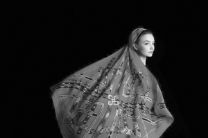 星空密碼絲巾上的紋樣圖形是和上古時代的文明聯(lián)系在一起的。傳說中的“洛書”即“九宮圖”的原型,就保留在古老的苗繡服裝上。中國造型文明的起始源于星相學(xué)的認知。關(guān)于這些傳說,在古老的苗繡中找到了印證與答案。設(shè)計沿用古老繡片上保留下來的這些神秘符號,通過再演繹,讓古老的智慧穿越時空,熠熠生輝。