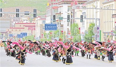 2017年7月24日下午,一場(chǎng)名為“瀟灑的康巴人”玉樹(shù)風(fēng)情巡游在玉樹(shù)藏族自治州州府玉樹(shù)市街頭上演。來(lái)自玉樹(shù)州一市五縣的康巴藏族兒女或馭駿馬、或盛裝、或歌舞,以行走巡游的方式展示當(dāng)?shù)鬲?dú)具特色的民族民俗文化。各縣巡游隊(duì)伍從感恩廣場(chǎng)出發(fā),途徑結(jié)古大道、民主路,最終到達(dá)玉樹(shù)軍分區(qū),沿途圍滿了觀看的群眾和游客,據(jù)悉,此次巡演在玉樹(shù)州尚屬首次。